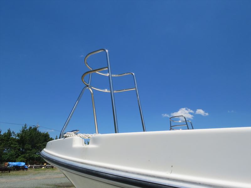 バウファイティングバーは奥行きのあるオープンガンネルのようなものです。しっかりと体を支えることができます。バウ右舷左舷に標準装備。